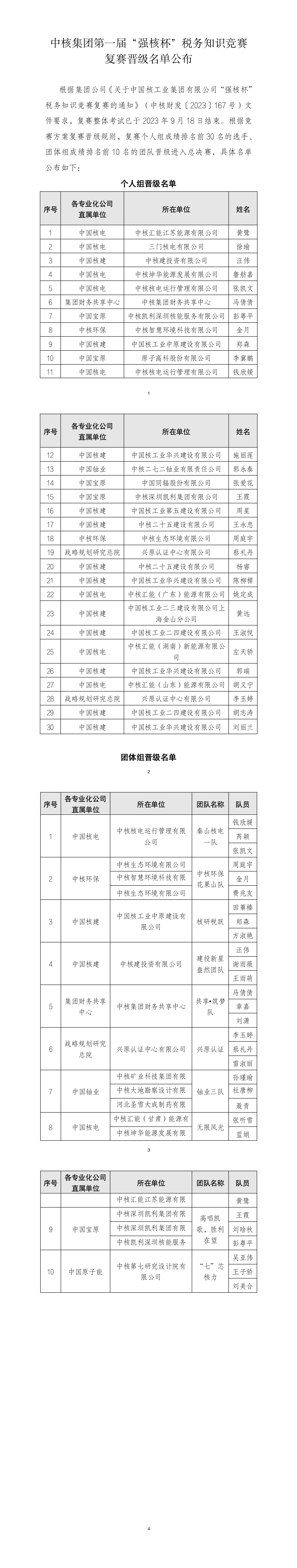 【晉級名單】第一屆“強核杯”稅務知識競賽晉級決賽名單公布