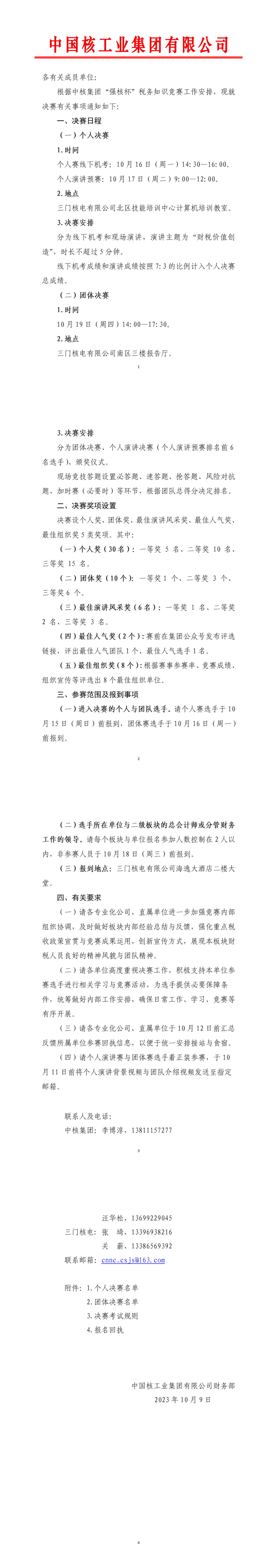 【競賽通知】 關于中核集團第一屆“強核杯”稅務知識競賽決賽的通知