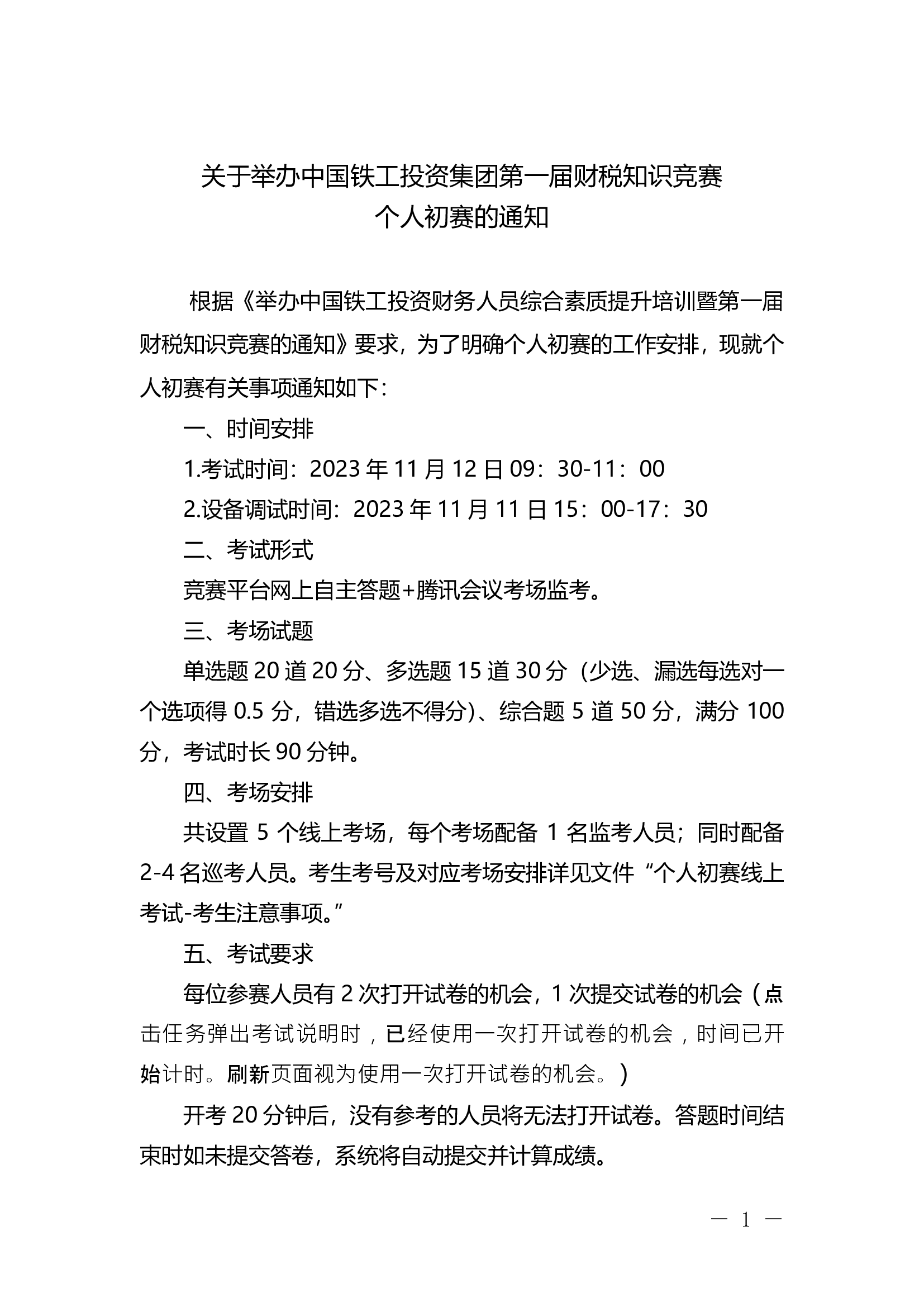 關于舉辦中國鐵工投資集團第一屆財稅知識競賽 個人初賽的通知