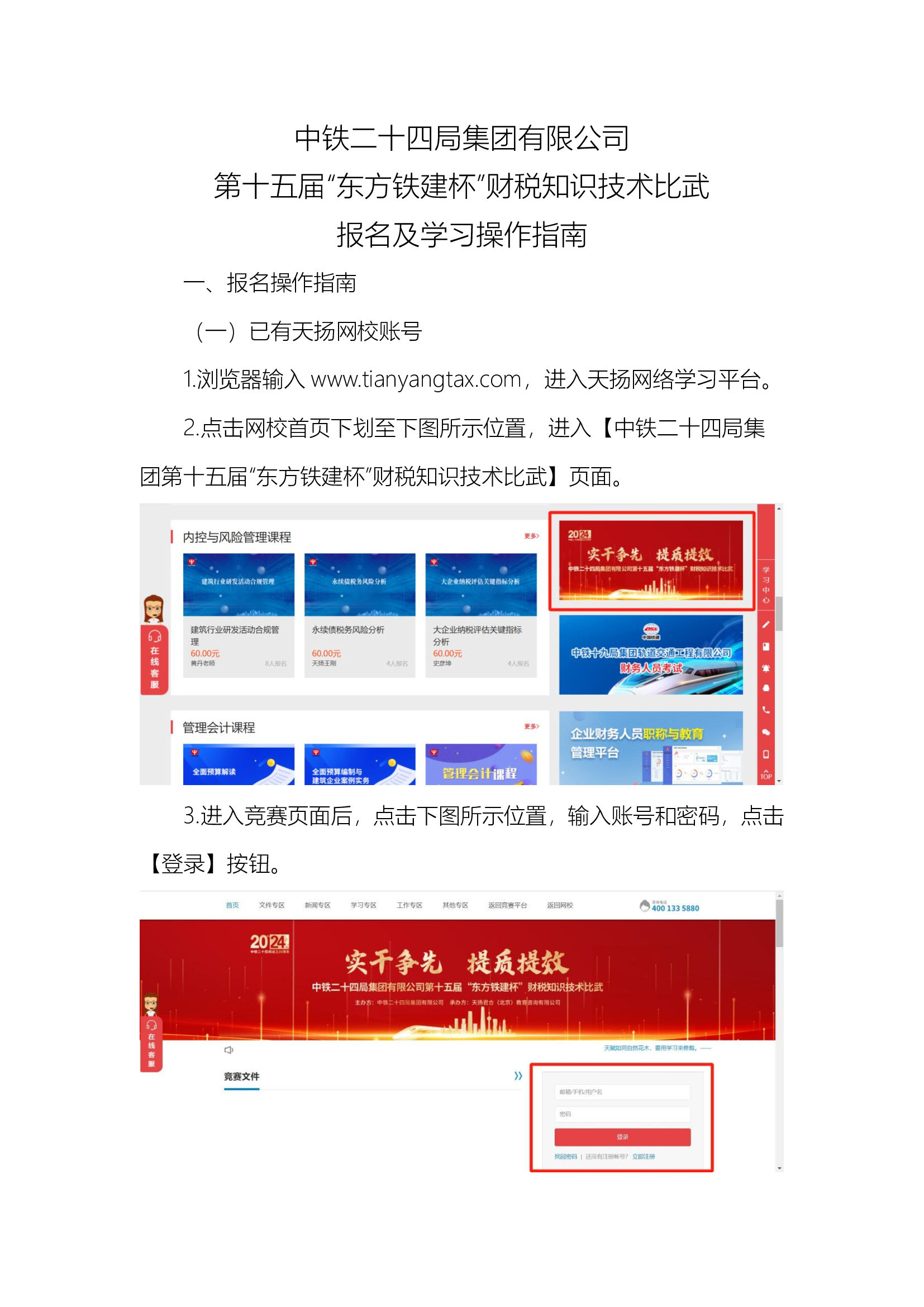 【操作指南】中鐵二十四局集團第十五屆“東方鐵建杯”財稅知識技術比武報名操作指南