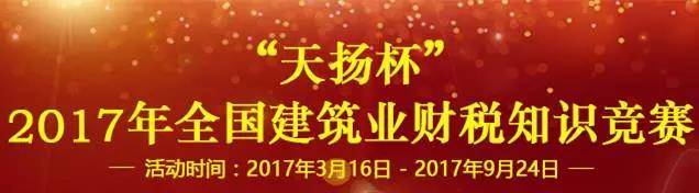 為貫徹落實營改增政策,提高施工企業財稅人員的業務能力,促進企業精細化管理,增強企業核心競爭力,中國施工企業管理協會聯合中國注冊稅務師協會決定開展2017年全國“建筑財稅領軍人才”暨建筑業財稅知識競賽活動。
