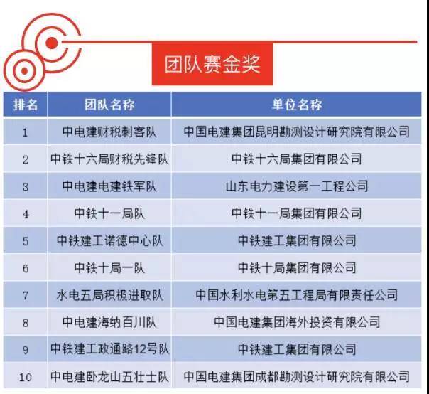 在9月24日團隊組現場決賽中,姚從莉、楊林梓、馬雪、王麗組成的集團公司財稅先鋒隊以總成績全國排名第二的優異成績獲得團體金獎,在中國鐵建系統排名第一。
