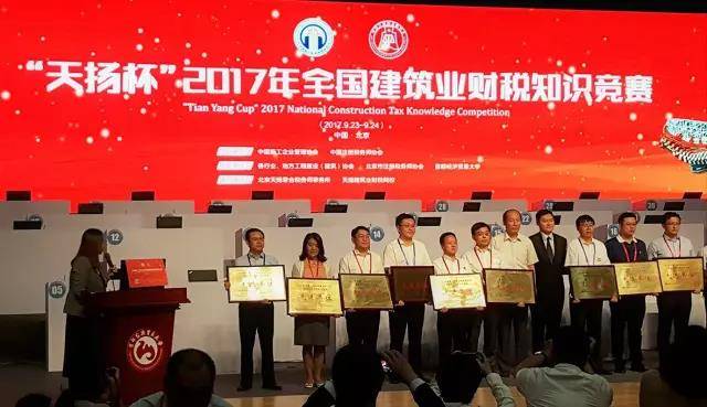 據悉,此次比賽由中國施工企業管理協會和中國注冊稅務師協會主辦,各行業、地方工程建設(建筑)協會、北京市注冊稅務師協會、首都經濟貿易大學協辦,北京天揚君合稅務師事務所、天揚建筑業財稅網校承辦,旨在貫徹落實營改增政策,提高施工企業財稅人員的業務能力,促進企業精細化管理,增強企業核心競爭力。全國財稅競賽初賽參賽55246人,復賽參賽3618人,在9月23、24日的決賽中,100多家優秀建筑企業、1000名財稅精英同場角逐“天揚杯”,是建筑行業財稅領軍企業間的實力比武。決賽由CCTV2進行專題報道,由新華社、人民網、新浪網、騰訊網等20家媒體進行新聞報道,決賽還通過中國施工企業管理協會官網、中國注冊稅務師協會官網、大賽官網平臺進行直播。