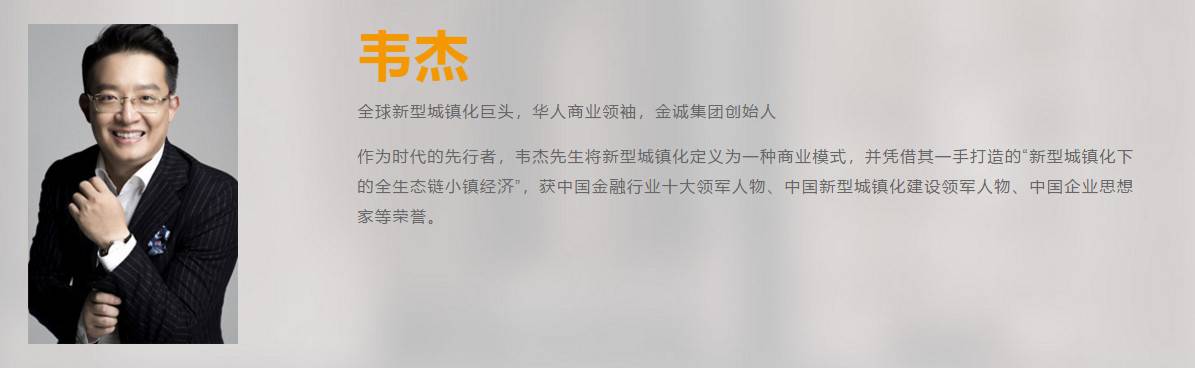 ? ? ? 官網(wǎng)顯示,成立于2008年的金誠(chéng)集團(tuán),是一家綜合性的現(xiàn)代城市發(fā)展集團(tuán)。金誠(chéng)集團(tuán)以金誠(chéng)特色小鎮(zhèn)為核心產(chǎn)品,運(yùn)用全球資源優(yōu)勢(shì),打造融合“PPP+產(chǎn)業(yè)化+金融化”的小鎮(zhèn)投資、建設(shè)、運(yùn)營(yíng)的全生命鏈小鎮(zhèn)。?截至2017年9月,擁有特色小鎮(zhèn)項(xiàng)目59個(gè),政府項(xiàng)目簽約量超過5700億元。
