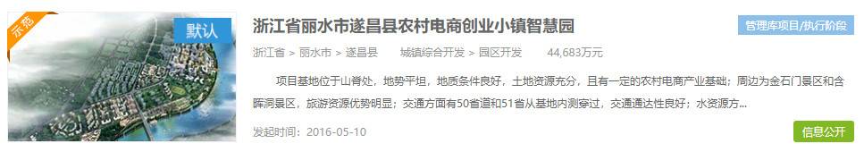 ? ? ? 在財(cái)政部政府和社會(huì)資本合作中心的PPP項(xiàng)目庫(kù)中查到與金誠(chéng)集團(tuán)相關(guān)的PPP項(xiàng)目?jī)H有浙江省麗水市遂昌縣農(nóng)村電商創(chuàng)業(yè)小鎮(zhèn)智慧園等項(xiàng)目。其中,遂昌電商小鎮(zhèn)項(xiàng)目總投資4.46億元,項(xiàng)目公司股東包括杭州金誠(chéng)新城鎮(zhèn)投資集團(tuán)新余觀復(fù)投資管理有限公司。