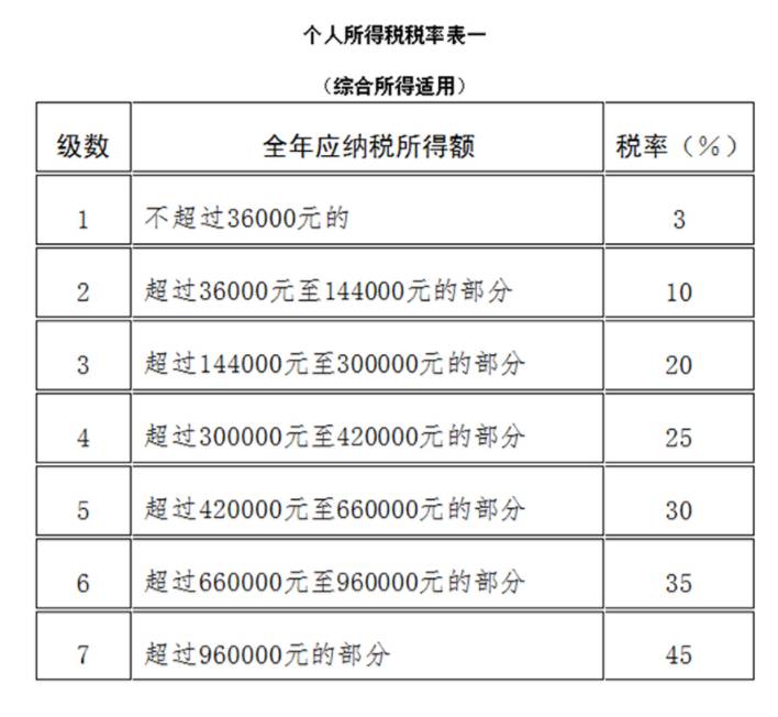 (注1:本表所稱全年應納稅所得額是指依照本法第六條的規定,居民個人取得綜合所得以每一納稅年度收入額減除費用六萬元以及專項扣除、專項附加扣除和依法確定的其他扣除后的余額。