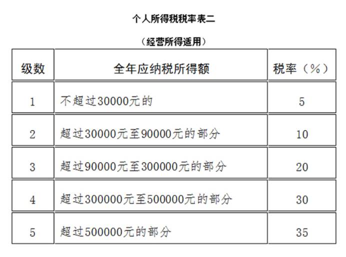 “(二)經營所得,適用百分之五至百分之三十五的超額累進稅率(稅率表附后);