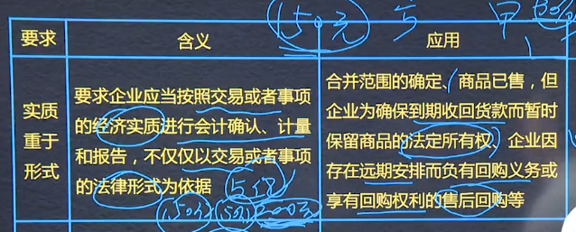 實質(zhì)重于形式:注重經(jīng)濟實質(zhì),不僅僅以法律形式為依據(jù);(商品已售為確保收款而保留所有權(quán),實質(zhì)已發(fā)生;回購)