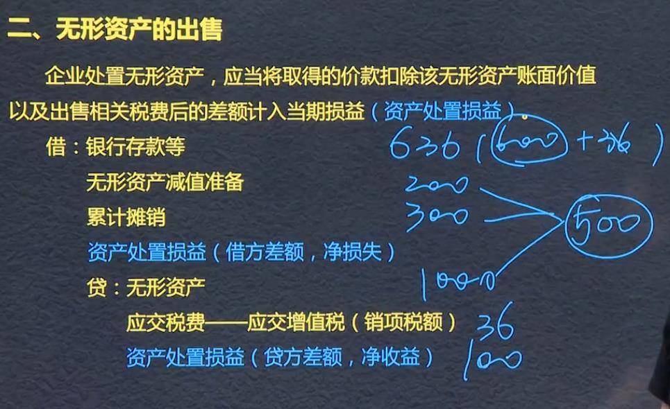 企業出售無形資產,應當將取得的價款與該無形資產賬面價值及相關稅費(不包括確認的增值稅銷項稅額)的差額計入資產處置損益。