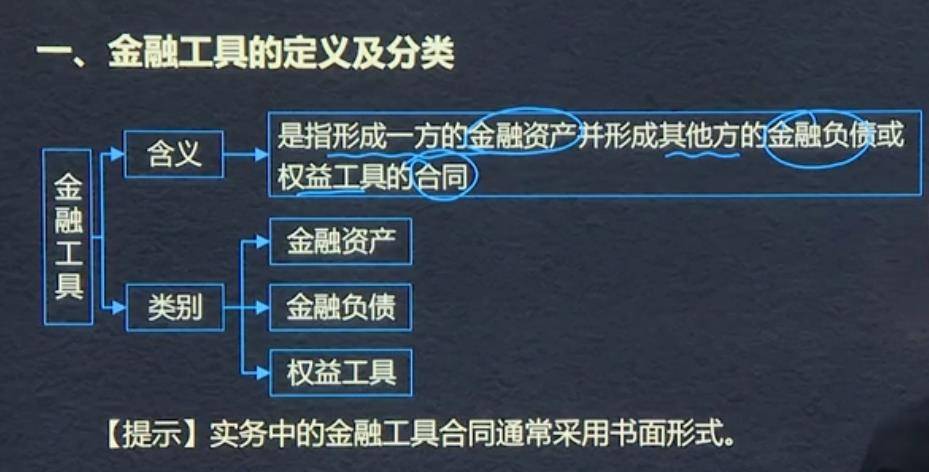 定義:是指形成一方的金融資產并形成其他方的金融負債或權益工具的合同。